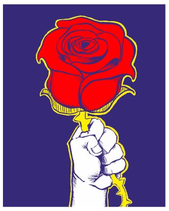 デザイナー&イラストレーターの鍋倉雅之さんによる薔薇の絵は、「連帯」をテーマに描かれたものです。