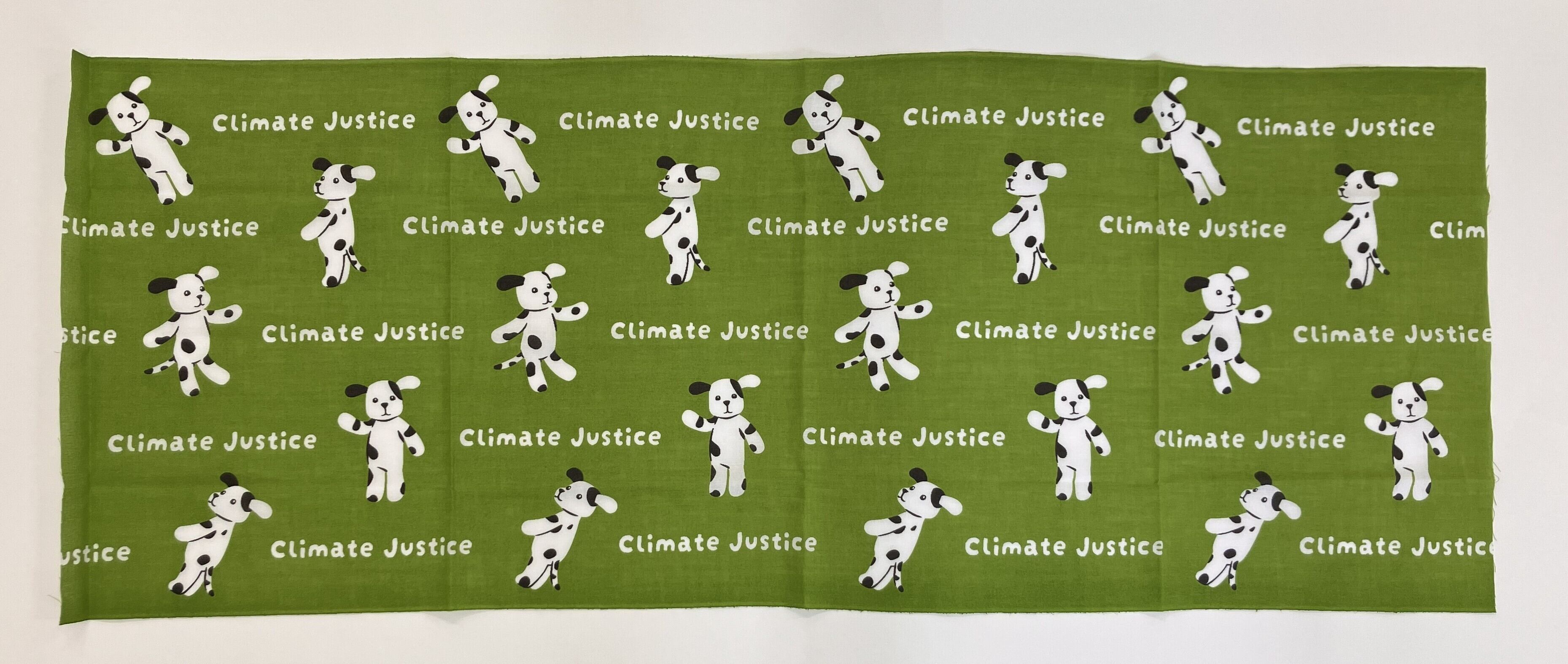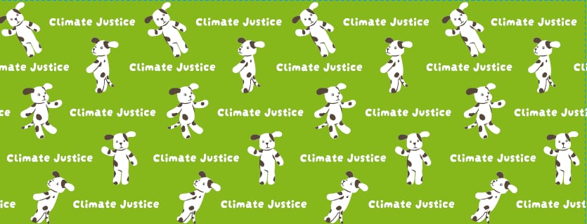 たいかいくんのイラストと Climate Justice の文字を全体にあしらいました。