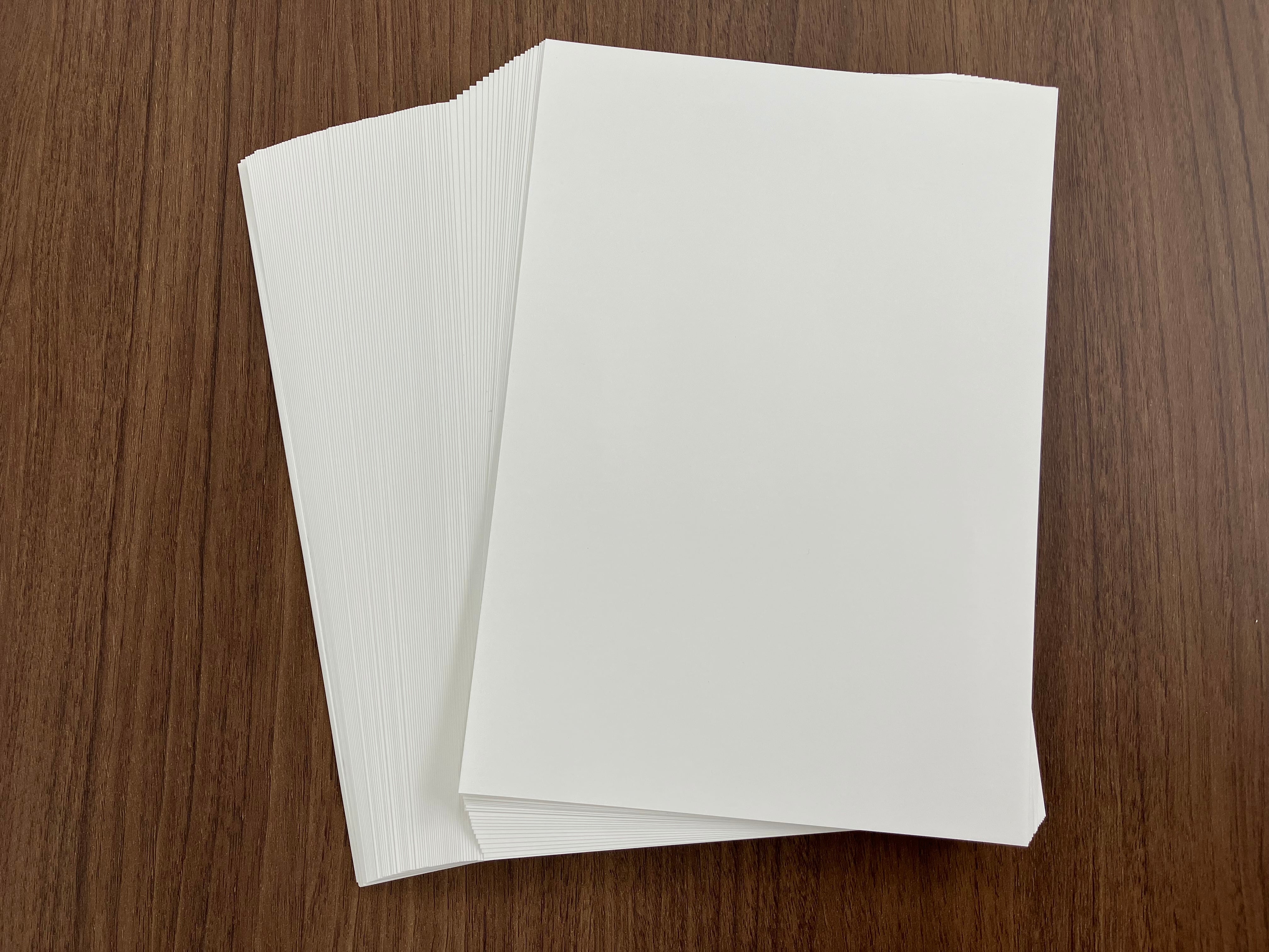 高白色の上質紙を、日常使いしやすいようにカットしました。